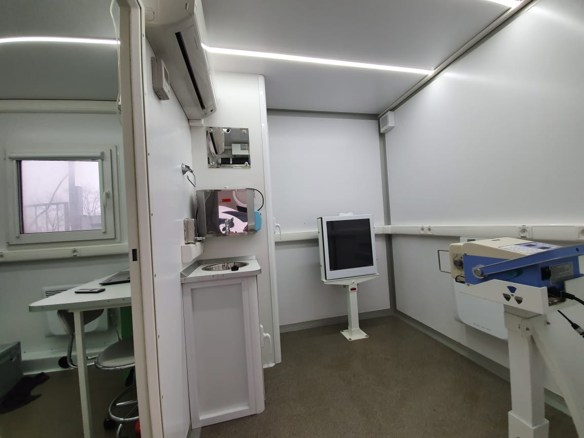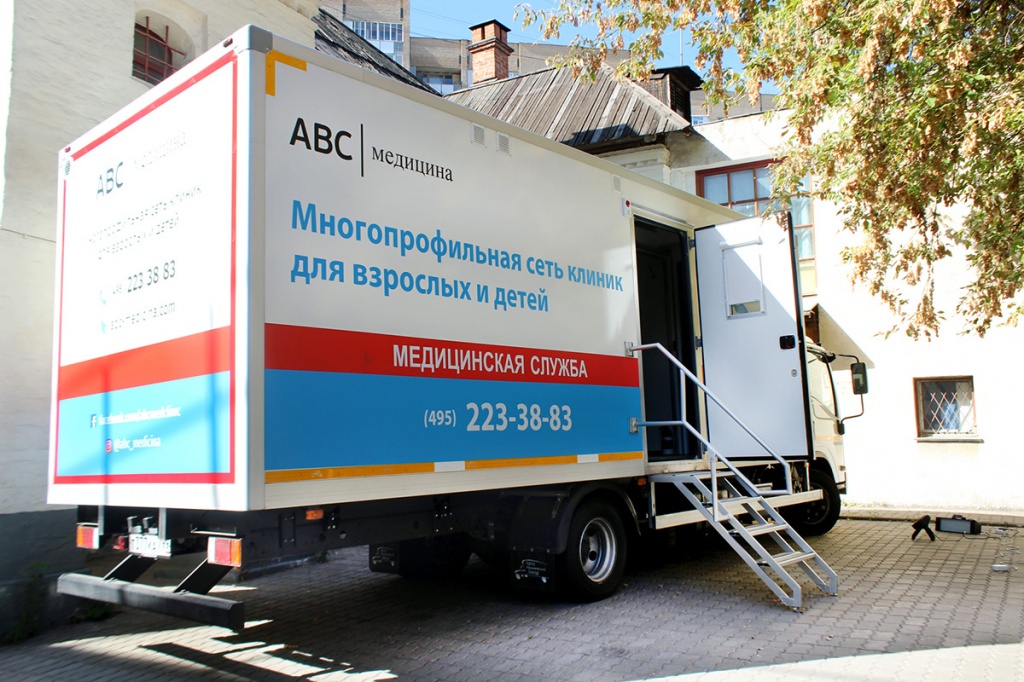 - Удобный сервис (в нашей клиники существует выездная служба которая может проводить медицинские осмотры с выездом в вашу организацию используя мобильный медицинский комплекс и мобильный кабинет флюорографии)
